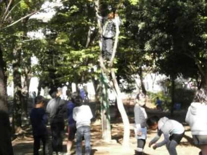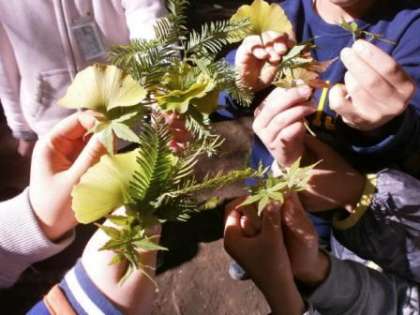 落葉は、まだはじまったばかりです。うきたの森はまだ葉で覆われています。昼休み森に足を踏み入れると『木登り』集団がこえをかけてくれました。『校長先生これを見て』2年生の児童が落葉を見せてくれました。木漏れ日に輝く落葉は幻想的に見えました。