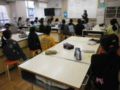 めあては、小物を丁寧に縫って完成させようです。今日の授業の説明が始まりました。みなさん先生の説明を真剣に聞いています。