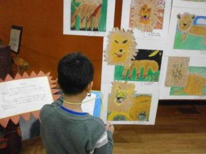 2時間目、4年生と6年生の児童鑑賞に参加しました。展覧会鑑賞カードを探検ボードにはりつけ、作品を一つ一つ鑑賞しました。児童の真剣な態度に感心しました。明日も児童と共に鑑賞します。