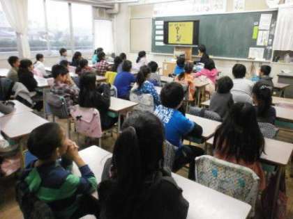 国語、算数、総合、体育、理科、社会、生活、特別活動の授業を公開しました。写真は、3年、4年、6年の授業風景です。