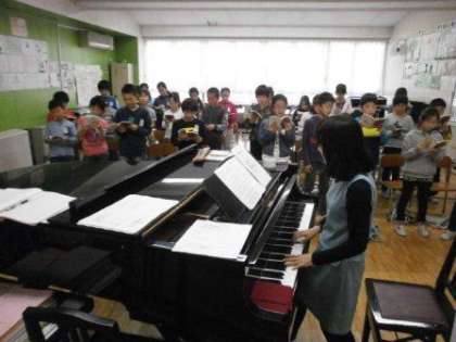 またもやサンバのリズムが恋しくなり音楽室に出かけてしまいました。チャイムが鳴り終わり4年生の元気なあいさつに迎えられました。