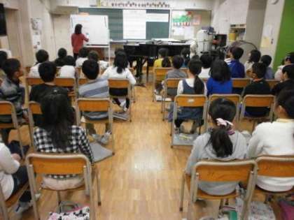 忘れ物をする児童は一人もいませんでした。最後、児童が音楽室を離れるまで気持の良い授業でした。