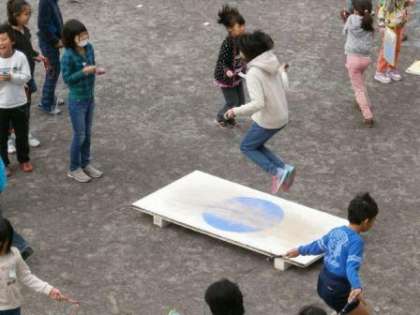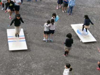 さて、今日からなわとび週間に入りました。中休みは、なわとび遊びの時間になります。体育委員会の児童によりジャンピングボードが用意され放送で音楽が流れリズムなわとびにも挑戦が出来ます。水たまりも少なくなり中休みに外遊びが実施できました。
