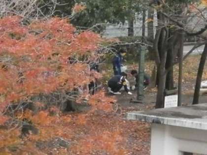 この落葉をそのままにしておくと近隣の皆様に迷惑をかけてしまいます。そこで、主事さんの登場になります。校長室の窓からその光景を見ていると、本校の主事さんに加え中学生の主事さんも加わり作業を行っていました。そうです、西葛西中学校、チャレドリのみなさんです。今日もお仕事頑張って下さい。