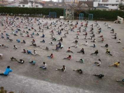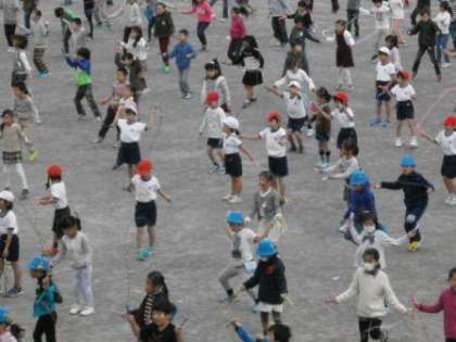 8時15分、校庭に児童が集まりました。なわとび週間、はじめての『朝なわとび』です。準備体操が終わると、いよいよリズムなわとびの時間です。校庭に流れる音楽は『夢をかなえてドラエモン』です。まえとび、かけあしとび、まえふりとび…。楽しい時間はあっという間に終了してしまいます。