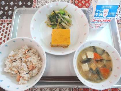 玉ねぎやかぼちゃなどの野菜の甘みや、おだしやひき肉のうまみがたっぷりで、とてもおいしく仕上がりました。特に4〜6年生のたまご焼きの食缶は・・・どのクラスも空っぽ!!
