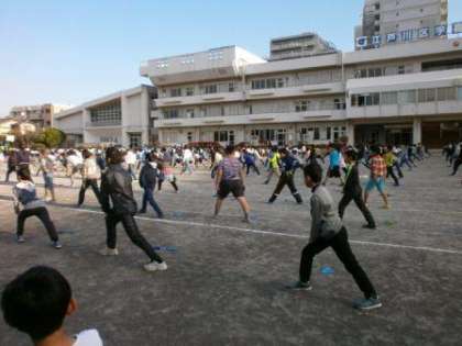 今日は、校庭におりて朝なわとびを参観しました。担当の先生の指示をうけ、校庭に大きく広がりました。まずは動かずに静かにします。6年生の中を歩きながら移動しましたが、みなさん正面をしっかりと見つめていました。気持の良い『朝なわとび』の始まりです。