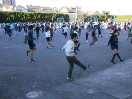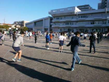 青空の下、気持の良い朝なわとびが実施できました。