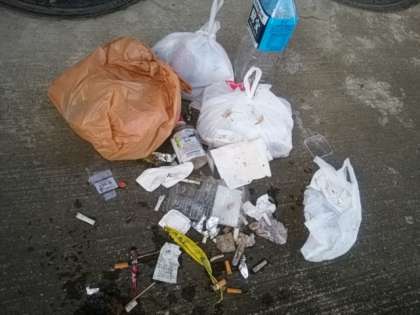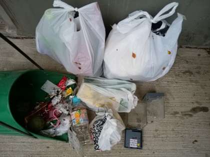 先週の月曜日と今週の月曜日に学校の生垣、道路に捨てられていたゴミです。なくなる日まで頑張ります。