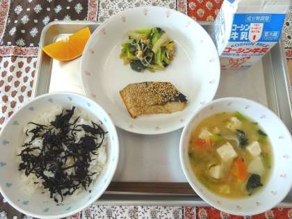 今日の給食の「はくさいのおろしポンずあえ」は、白菜などの野菜を、レモン汁を使って作った、てづくりのポン酢と大根おろしであえたおかずです。
