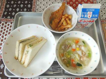 今日は、給食後に「今日の給食、おいしかった〜!!」「今日のフィッシュアンドチップス、おかわりしました!!」とたくさんの子がうれしい声を聞かせてくれました。(←調理員さんがサクッと上手に揚げてくれました!)