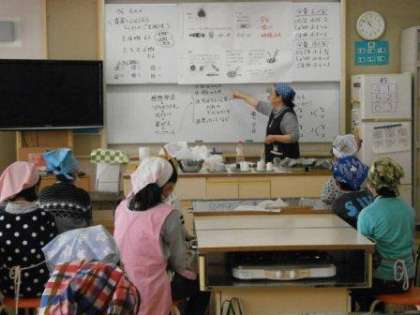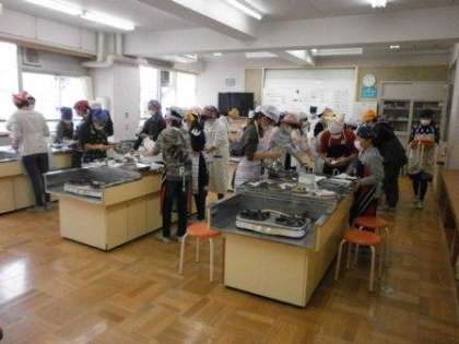 6年生が調理実習を行うので、その現場に向かいました。勿論、家庭科室です。