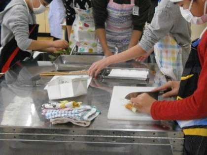 包丁、そして火を使う調理実習です。とても素晴らしい授業態度に感動してしまいました。