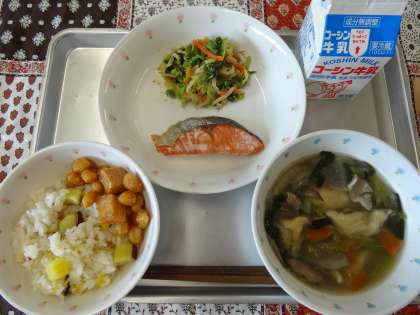 今日の集会で6年生がおはなししていたように、戦争中や戦後すぐは食べるものがなく、ごはんも少しのお米に、さつまいもやあわ・ひえ・きび・むぎなどの「雑穀」を一緒に炊いて食べていました。