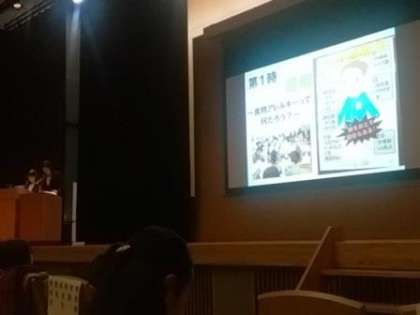 金曜日の午後、水道橋にある東京都教職員研修センターで行われた『学校給食安全・衛生管理研修会』に出席しました。この研修会で『江戸川区小学校教育研究会食育部』3年間に渡って取組んだ〜発達段階に応じた食物アレルギー対応の授業の構築〜の事例発表を行いました。一昨年、昨年、今年と本校で取り組んだ授業もあり、本校から栄養士、そして発表者の一人として食育リーダーが参加しました。会場には350名を超える都内の栄養職員が集まる大規模な研修会となりました。