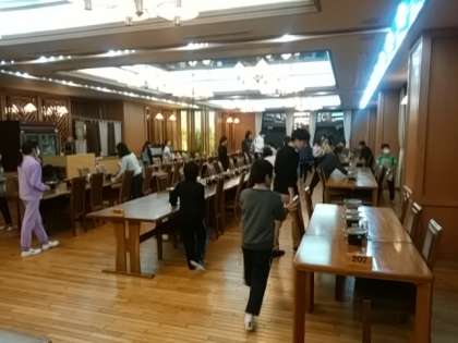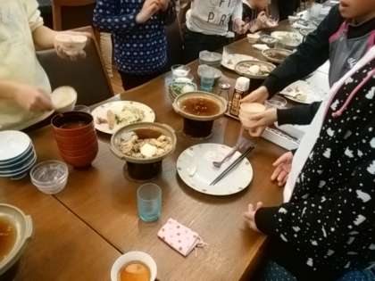 『御馳走様でした』が、食堂に響きました。皆さん笑顔です。そして、一斉に片付けがはじまりました。