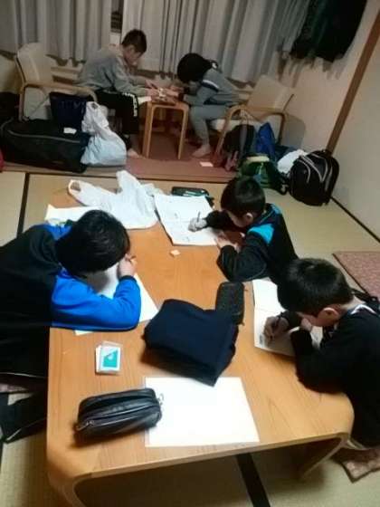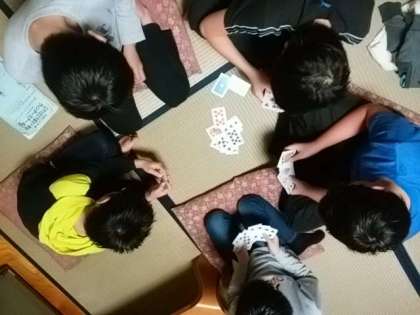 今日は、渋滞に巻き込まれたため、室内レクが3日目に順延となり、夕食の後は入浴になりました。その後は、室内レク・準備と各部屋で過ごしました。各部屋の上履きもきれいに揃えられていました。数時間前とは違い、また一つ成長しています。