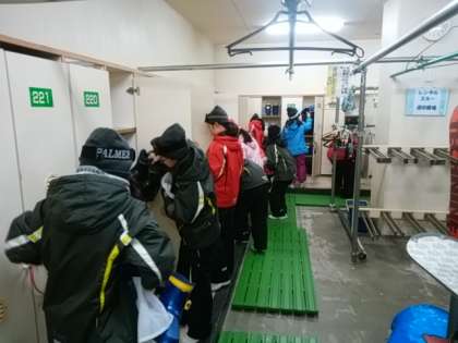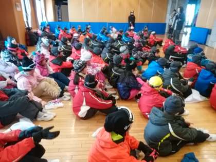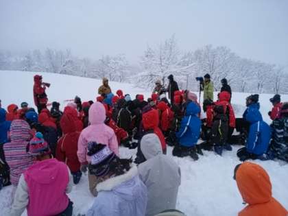 雪上運動会の会場へ移動します。新しく切り開いた、宇喜田小教員ロードを突き進み、会場に到着しました。