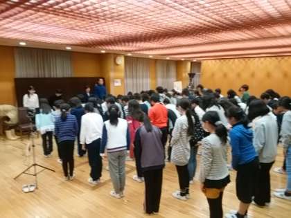 夜の活動終了後、『民話』の会の皆さんから5年生のきく姿勢、感想を発表する時の態度について
