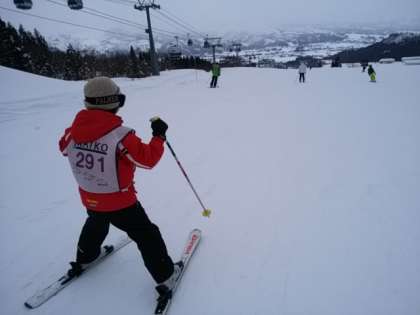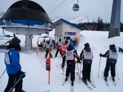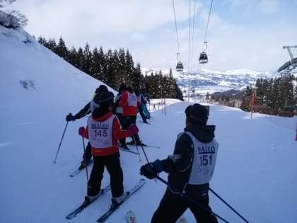 昼食の豚丼を食べ終わり12:30に集合場所に集まりました。午後の滑降のスタートです。