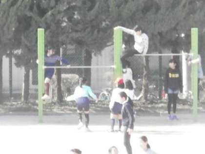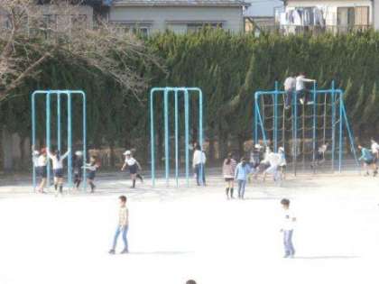 共遊び、鉄棒、工事…。今日も学校は成長しています。