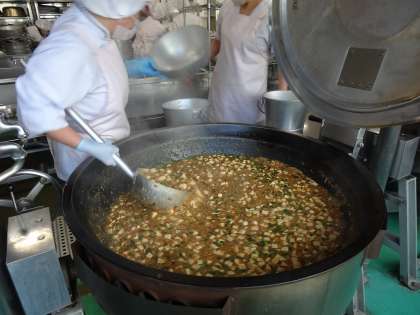 給食では全員が食べやすいように、辛さは少しだけ控えめにしていますが、豆板醤や中国の甘味噌・甜麺醤(テンメンジャン)などを使って、本格的な味を目指しました。