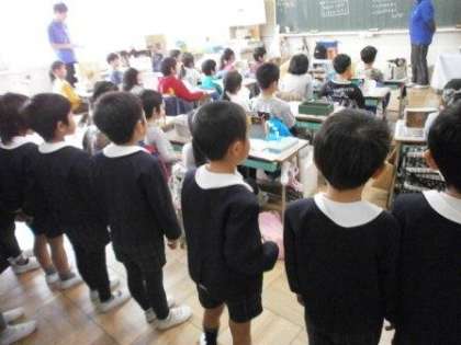 宇喜田幼稚園の園児が今年もやってきました。明るく元気な園児です。園児が教室に入った瞬間、1年生がお兄さん、お姉さんに変身しました。