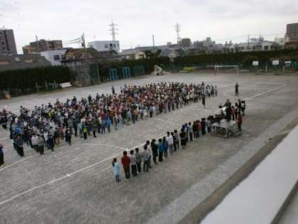 すくすくドッチビー大会に本校から3チームが出場しました。その表彰式です。8時20分前、全校児童の整列は完了していました。朝礼台で見ていると、とても気持ちよくなります。6.5.4.3年生は、動きません。副校長先生が声を掛けると、試合に出場した3チームの選手が駆け足で整列しました。準優勝・優勝のチームの代表児童が朝礼台に上がりました。とても立派な態度です。表彰が終わると、また駆け足で自分のクラスに戻って行きました。