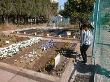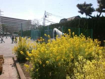 GO GO花壇を見つめている児童がいました。春を感じているのでしょうか。校庭に咲く黄色い菜の花、旅番組を見ているようです。