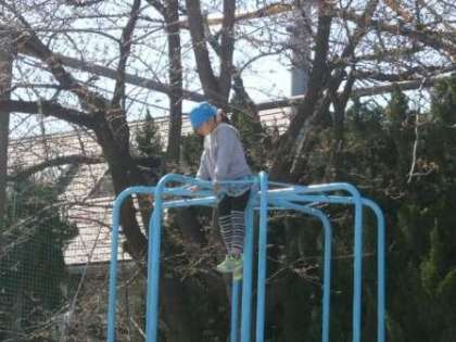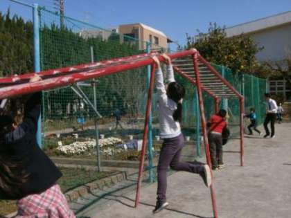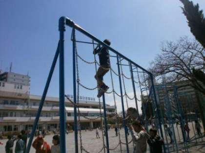 なぜか児童は、高いところが好きです。少しずつ登りながら、自分自身で危険度を確認していくのです。
