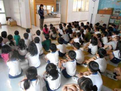 どの子もしっかりと体育座りをし、最後まで話を聞くことができました。