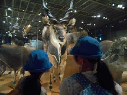 動物のはく製や恐竜の化石など、どの子も目を輝かせ、見学しています。