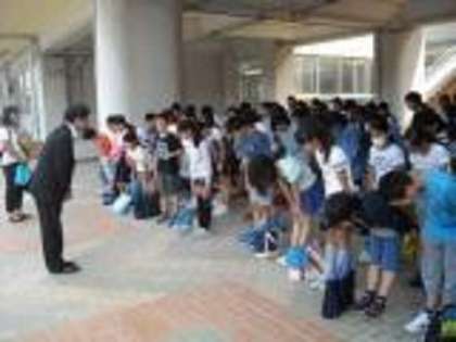 出発式でバス車内のマナーと鑑賞マナーについて確認し、出発!!
