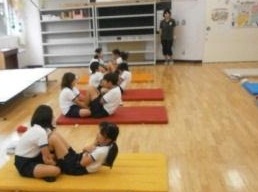 1年生は6年生と2年生は4年生と3年生は5年生が組んで、測定しました。上級生が下級生に測定のやり方やコツを伝えたり、記録を記入したり、とても優しく接することができました。