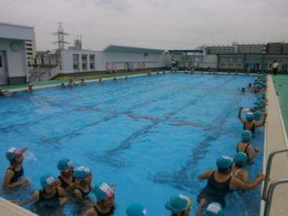月曜日、3,4時間目は3年生の浮く・泳ぐ学習です。今年初めてのプールでの学習になります。1回目ですので、プールでのきまりを一つ一つ確認しながら、指導を進めていきます。顔をつけたり、潜ったりして水慣れをし、大の字浮きや節浮きなど水に浮く感覚を楽しみました。その後、流れるプールをつくり、いろいろな浮き方をさらに楽しみました。