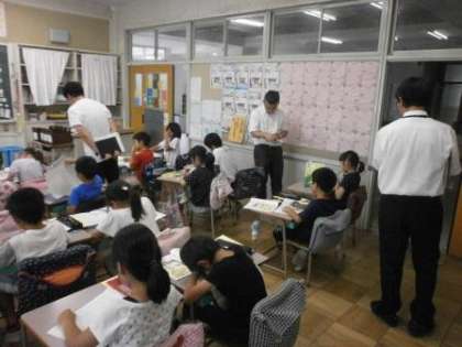 放課後、先生方が集まり、授業について検討しました。明日の授業に生かしていきます。