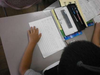 国語「きつねのおきゃくさま」の授業でした。とても上手に音読したり、劇で登場人物を演じたりしました。その場面の要約を小見出しにして、しっかりまとめることができていました。