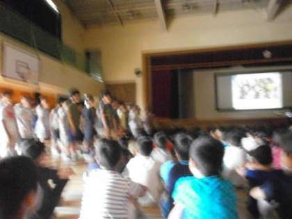 5年生が総合の時間に学習したユニセフについて発表しました。子供たちが当たり前に学校にきていることが、世界では当たり前でないこと、働いている子もいること、6歳まで生きられない子…さまざまいることを知りました。