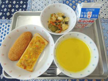 今日はきなこあげパンはもちろんですが、ツナマヨポテトトーストも大人気で、給食時間にクラスを回っていると「これとってもおいしい!!」と話してくれる子がたくさんいました。