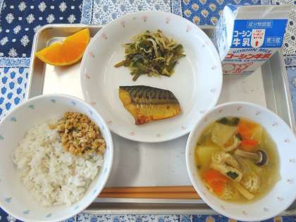 去年初めて給食で「スタミナなっとう」を出したとき、みなさんの衝撃はとても大きなものだったようですが(笑)、今年はもうそのおいしさが分かっているせいか、驚く声も少なく、みなさんおいしそうにいただいていました。