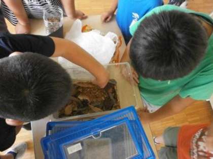 3年生のプレイルームの「うきうき昆虫園」はすっかり宇喜田小の名物になり、音楽室からの帰り道や雨に日の休み時間等、他学年の児童も見に来ます。そのうきうき昆虫園の今の主役は「カブトムシ」です。さなぎからどんどん、成虫になり、土から顔を出してきました。夏を感じる昆虫の登場です!!