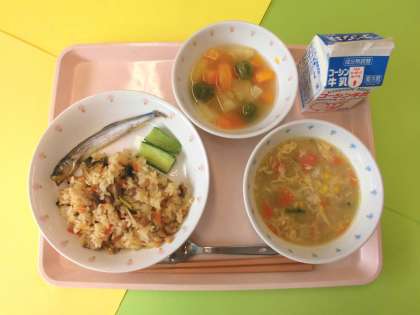 今日の給食時間中では、「ししゃもは苦手…」「きゅうりは好きじゃない」と言いながらも、「でも少し食べてみた!」「今日は全部食べられたよ!」と頑張っている子がたくさんいました。みなさんのすこやかな成長を願って作った給食、思いが通じたようでとても嬉しかったです。