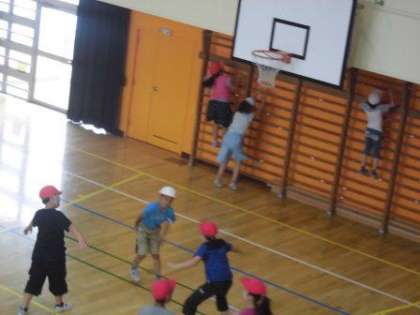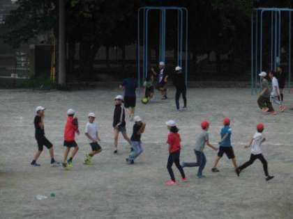 今年度より、運動遊びをマイナーチェンジしました。本校の体力調査の結果より、特に力を入れるべく「ソフトボール投げ」投力の向上をめざし、高学年では、昨年度からある「思いっきりスロー」に加え、体育館での「ロケット飛ばし&ろくぼクライミング」が加わりました。