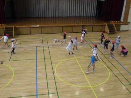 子供たちは、2年目ということもあり、スムーズに運動遊びに取り組むことができました。友達とかかわる楽しさ、体を動かす楽しさを味わいながら、体力の向上をめざします。