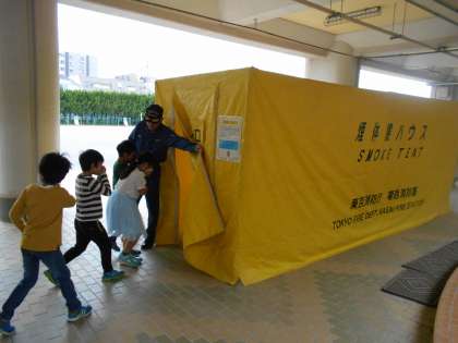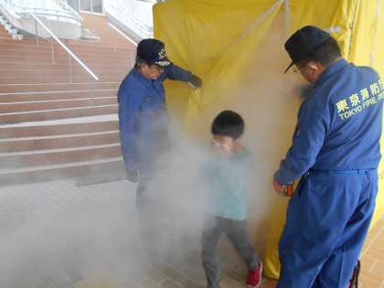 8日(火)の避難訓練は、火事が起こった場合を想定して行われました。2年生は訓練の後に煙ハウスの体験をしました。煙ハウスの中は、少し先も見えないくらい煙でいっぱいで、火事の煙の怖さがよくわかりました。2年生の児童は、「前が全然見えなかった」「すごい煙だった」と、驚いていました。