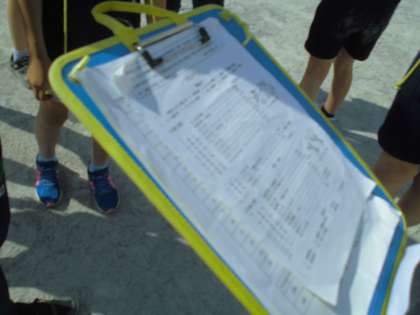 運動会が進むにつれ、校舎に掲示してある得点板の点数が刻一刻と変化していきます。点数の集計・得点板の点数を入れてくれているのが採点係です。個人種目・団体種目・全校競技など、得点に関係するプログラムでは専用用紙に得点を記入し、得点板が掲示されている教室まで点数を伝えに行きます!!係打ち合わせでは得点表の確認や得点板の数字を正確に入れる方法などを確認していました。また、閉会式の成績発表は採点係の6年生児童が務めます!!得点を正確に集計する児童の姿に注目です!!