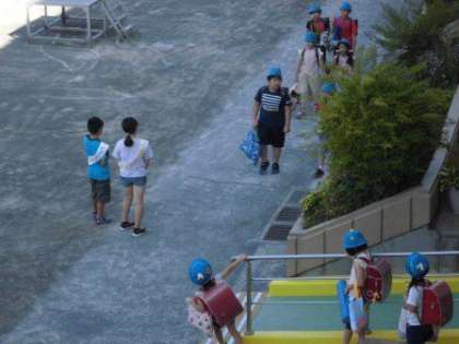 今週は、代表委員会がピロティ前に立ち、元気よくあいさつをしています。
