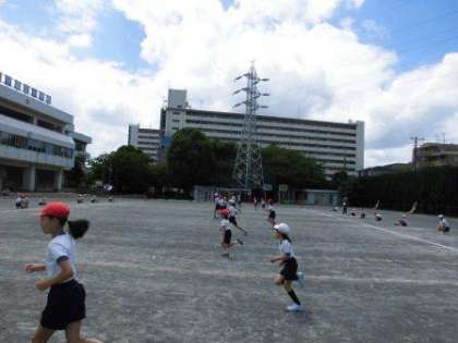 梅雨の晴れ間、今日は体力調査の20mシャトルランに取り組む学年が多かったです。