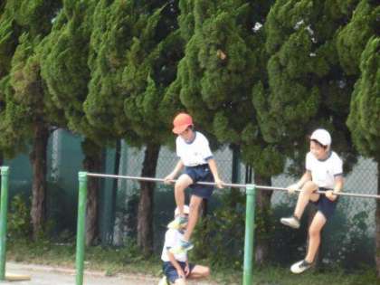 今朝は「鉄棒集会」です。