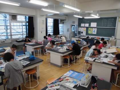 7月30日からの3日間、夏休み図工教室を行いました。5年生と6年生が、「環境をよくする絵画コンクール」など様々なポスターや絵を描く活動に取り組みました。ポスターを通して、伝えたいことが伝わるような絵や言葉を考え、丁寧に下描きし、絵の具やカラーペンを使って彩色しました。3日間集中して取り組み、どの児童も素敵な作品が完成間近になりました。家でぜひ、作品の続きに取り組んでほしいと思います。